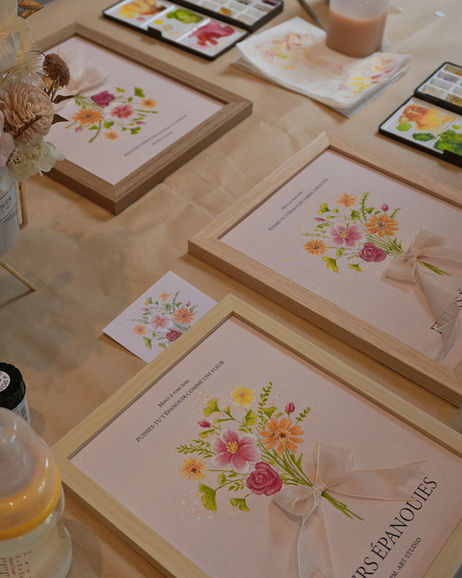 提供 3 款原創設計畫布挑選,花束水彩小相框價格已含框,其餘兩款構圖需另加購畫框。